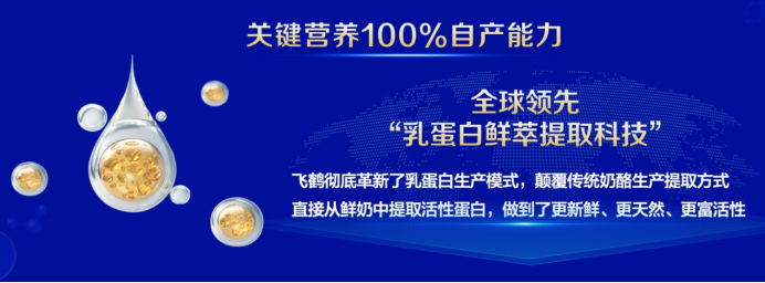 在工艺创新上,飞鹤以全球领先的乳蛋白鲜萃提取科技,直接从飞鹤优质鲜奶中提取活性蛋白,最大程度保留乳蛋白的天然活性和营养功能,并完成规模化产业落地,掌握乳铁蛋白、脱盐乳清粉等关键营养的100%自产能力,确保每罐奶粉都拥有更新鲜的品质、更鲜活的营养。