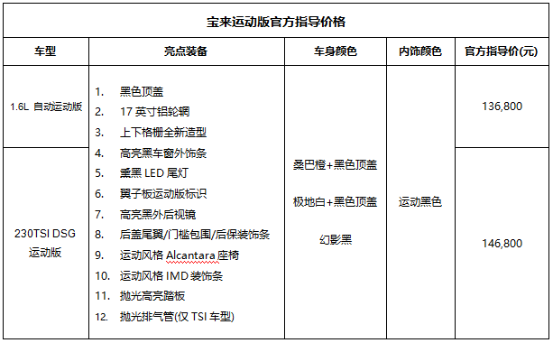 而宝来品牌的另一成员——宝来运动版同样看点十足,诚意满满。宝来运动版在2017年型的基础上更加突出了运动元素,提供桑巴橙、极地白、幻影黑三种车身颜色,同时搭配黑色车顶,使宝来的运动气质油然而生。
