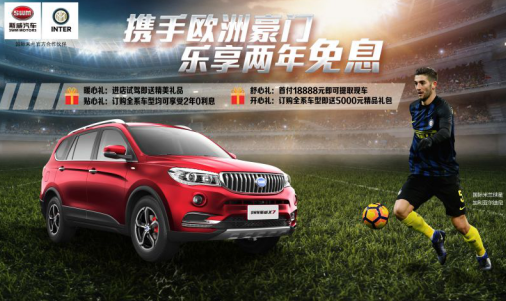随着SWM斯威汽车与国际米兰足球俱乐部日前达成官方合作,SWM斯威汽车正式成为国际米兰足球俱乐部中国区官方合作伙伴,意大利品牌汽车和百年欧洲豪门,将携手一起闯世界,继续书写新的意式传奇与辉煌。SWM斯威汽车特此面向广大新老客户,在全国掀起一场“携手欧洲豪门 乐享两年免息”的钜惠风暴!即日起凡到店的客户均能享受暖心礼、贴心礼、舒心礼、开心礼多重惊喜,共同分享SWM斯威汽车携手国际米兰足球俱乐部的喜悦,体验源自意大利的10万级全能大7座SUV标杆的魅力与风范。