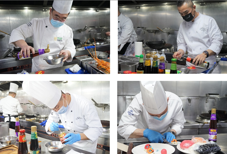 成都棕榈泉费尔蒙酒店的中餐行政总厨介绍,酒店后厨经常会使用到李锦记酱料,“比如我们用的最多的精选生抽、老抽和财神蚝油,还有旧庄蚝油,酒店的一些诸如鲍鱼的高端食材烹饪,我们就会用到旧庄蚝油。”不仅如此,来自成都希尔顿酒店的中式面点厨师长介绍,他所制作的“醒狮包”中就使用到了李锦记旧庄蚝油来进行馅料的调味。