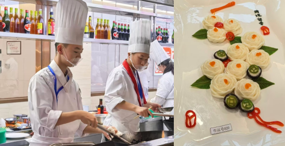 300道理论题,130分钟内完成月季花雕刻、指定川菜经典菜式和创新菜——这是2025年度成都市中等职业(技工)学校师生技能大赛(中式烹饪)的比赛项目内容。李锦记希望厨师贺家林、阿育有呷代表成都财贸职高参加此次比赛,并在高手如云的赛场上分别获得第3名、第5名,均获二等奖,顺利晋级下一轮的四川省中职技能大赛,其中贺家林的烹饪理论成绩排名第一。