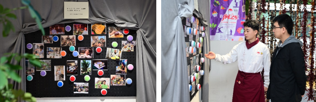 撩开食材串起的门帘,手指上还残留有香菇和陈皮的香味,首先闯入视线中的是身侧的一面照片墙:与聚餐、食物有关的记忆被相机记录下来后,又被冲洗出来,录成声音装进“手动录音机”中,轻轻拍下后,在视觉和听觉的唤醒下,往日或甜蜜、或酸涩、或刺激的记忆如潮水般涌来:那些在餐桌上难以宣之于口的情感,那些再也无法复制的味道,那些人生中的“头道”……最后都成了厨房中有温度的存在,按下按钮,听听别人的回忆,也是对声音主人的隔空回应。