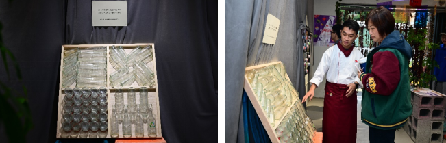 而承载着厨房百味的酱料玻璃瓶,在可持续“李”想计划的改造下,有的成了装有盛开玫瑰的花瓶,点缀了“餐桌”,增添了一味浪漫;有的成了一枚蜡烛,温暖了“餐桌”,增添了一度温暖。“这个玻璃瓶的大木框挺有意思的。”观看展览的居民大多数都要停下脚步,指着立在板凳上的木框发出感慨——这是由56个李锦记的废弃酱料玻璃瓶组合而成的艺术装置,代表着56个民族,也蕴含着辽阔丰富的中华优秀饮食文化,在万家灯火的流转中,续写“李”想新篇章。