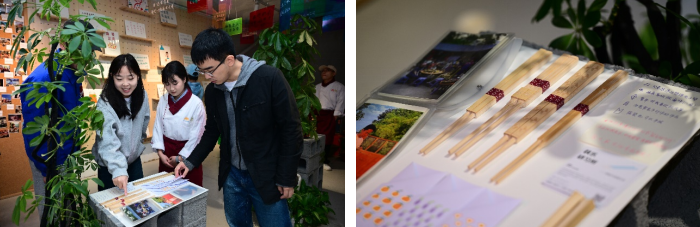 时光之味,同样存在一间餐饮企业的创业史中——此次展览得到了成都本地餐饮企业“孔干饭”的支持。自从今年3月,孔干饭加入可持续“李”想计划以来,它已经成为了李锦记的挚友,在打造有意思、有温度的厨房共创道路上携手并进。展览中,孔干饭提供了旧时处理稻米的农具、烹饪用的的锅灶。经过李锦记希望厨师的旧物打散、重组修复,农具变成装饰门板,锅灶也有了新的表达方式,“希望能通过这些厨房旧物的展示,让更多人了解到厨房中蕴含的文化:它不仅仅是炒菜做饭的场域,更是中国人含蓄情感表达的出口。”