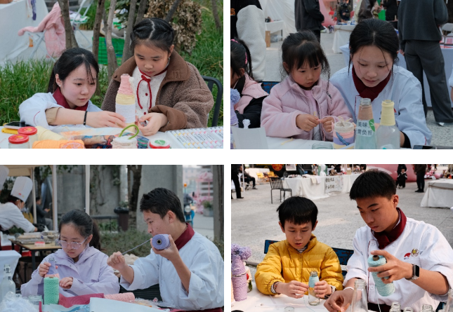 “我想给瓶子设计一条裙子,有蕾丝花边的。”“我要在瓶子上贴上熊猫拼布”“这是我设计的笔筒,独一无二的”……希望厨师的手工坊前聚集了不少热爱手工的孩子们,可谓是此次市集的顶流:他们手中原本光秃秃的酱料瓶,之前都是李锦记薄盐生抽、蒸鱼豉油、海鲜酱、沙茶酱的玻璃瓶,来自于李锦记可持续“李”想计划过去一年的搜集;而孩子们坐着的板凳也是出自可持续“李”想计划,是去年8月,李锦记希望厨师黄文辉、古柏宇由旧板凳改造而成,上面还写有不少实用的可持续健康菜谱。