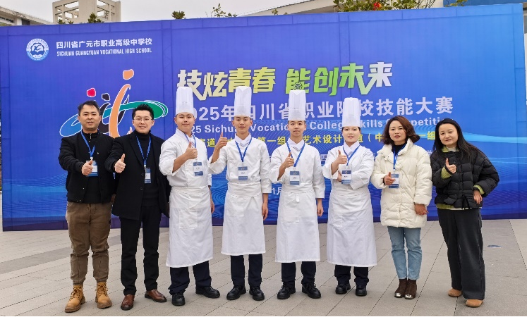 李锦记希望厨师贺家林(右4)、姜定权(右5)及其团队获得四川省职业院校技能比赛一等奖