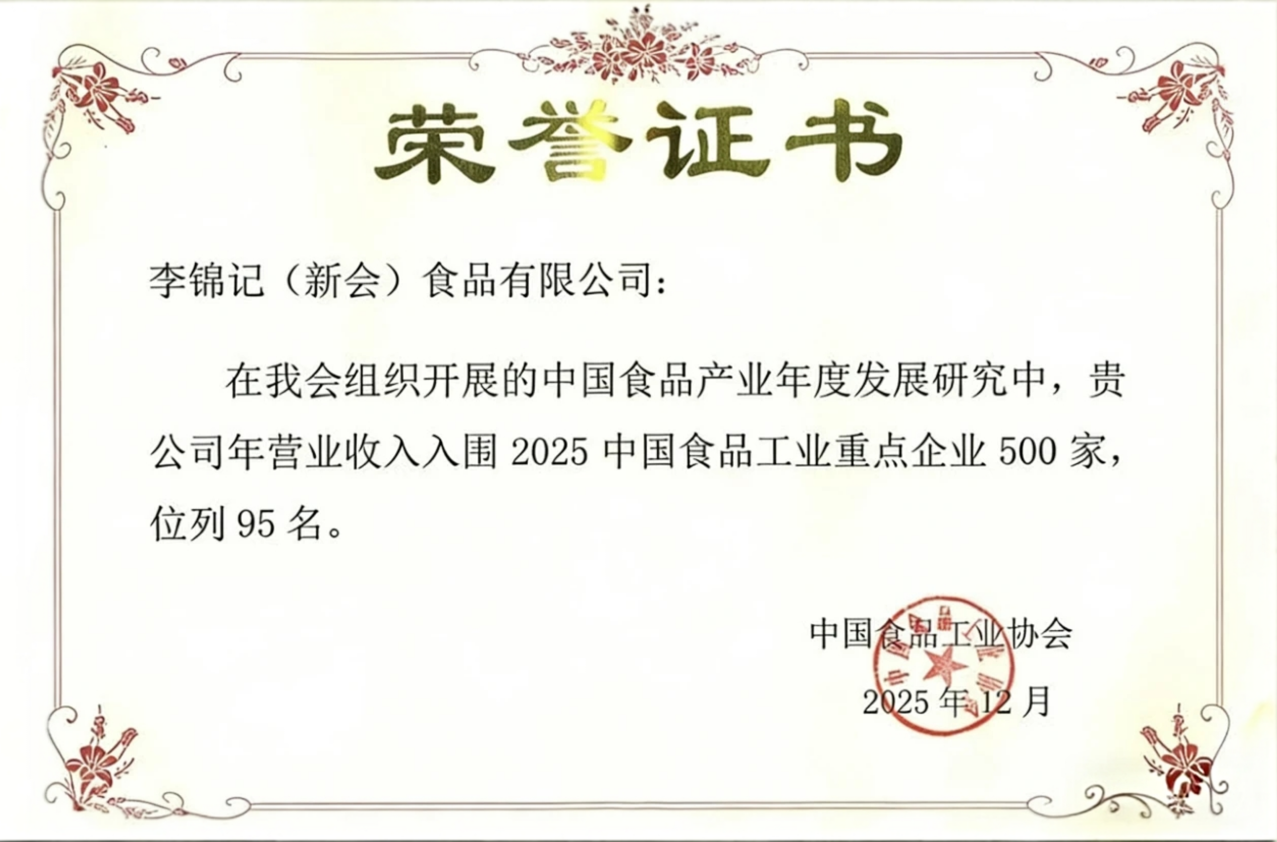 评选由企业自愿申报,经地方协会推荐、权威机构审核后形成。入选500强的企业涵盖食品加工全产业链,具备突出的行业代表性及规模实力。此次成功入选,充分体现李锦记跨越三个世纪以来,对品质与创新的不懈追求。