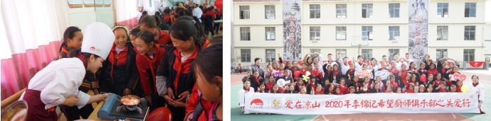 第一次是2020年11月,在新华爱心教育基金会的支持下,跟随李锦记的志愿者和9位李锦记希望厨师,来到距离成都585公里的布拖县石咀小学,用自己的厨艺为孩子们带来了烹饪趣味课堂以及趣味市集。那时,陈秋香的身份是成都希尔顿酒店的面点厨师。