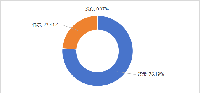 调查结果显示,超九成(99.63%)受访者有过直播电商消费经历,其中“经常(每月数次)”占比76.19%,“偶尔(每月少于一次)”占比23.44%,仅有0.37%的受访者从未在直播电商消费过。这一数据说明,直播电商已从新兴业态转变为主流消费方式,高频消费群体占据主导地位。