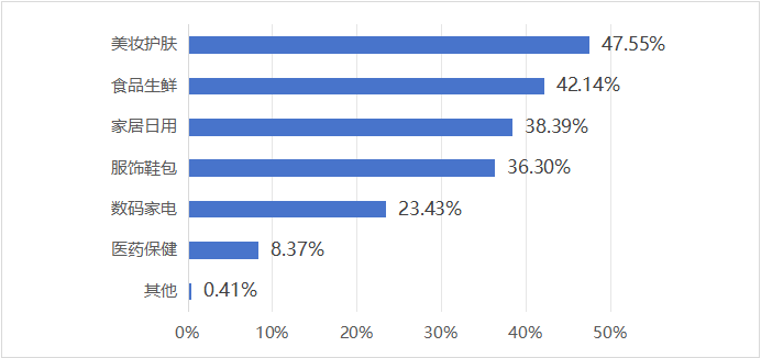 (三)消费商品类型方面:美妆护肤与食品生鲜最受欢迎,品类结构呈现多元化特征