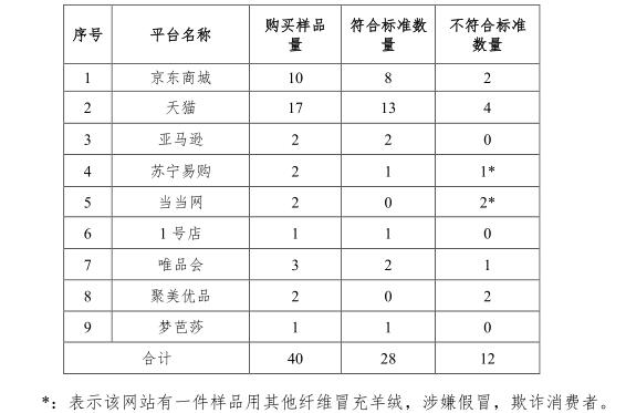 经测试,40件样品中7件样品产品标识标注不规范;10件样品质量未达到国家标准要求;2件样品用其他纤维冒充羊绒,涉嫌假冒(详细测试结果见比较试验结果汇总表)。具体如下: