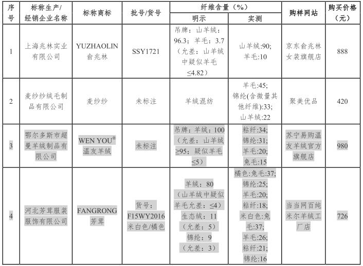 经测试,40件样品中7件样品产品标识标注不规范;10件样品质量未达到国家标准要求;2件样品用其他纤维冒充羊绒,涉嫌假冒(详细测试结果见比较试验结果汇总表)。具体如下: