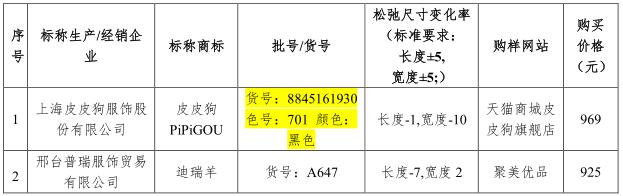 松弛尺寸变化率是指羊绒衫经洗涤并进行缩水后,在无张力条件下平置干燥后达到的松弛状态时的尺寸变化率。该指标反映羊绒衫洗后变形程度,直接影响消费者的二次穿用。经测试,40件样品中只有皮皮狗牌和迪瑞羊牌的样品该指标不符合国家标准要求: